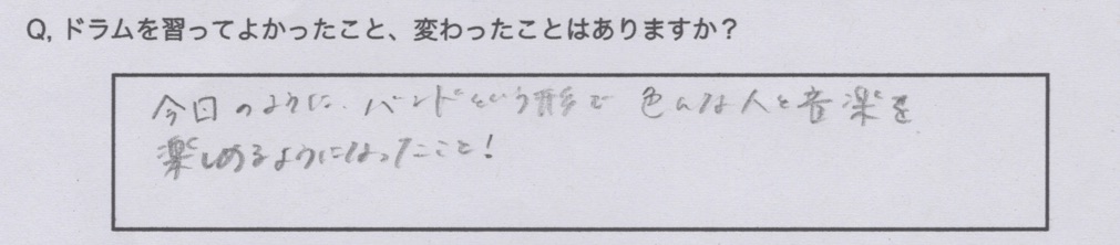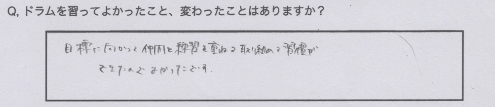 ドラム教室に通うことでできることが増えたり、ステージに立つ機会が増えたという声もあります。